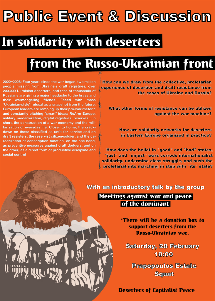 Source: https://capitalistpeacedeserters.noblogs.org/2026/03/24/report-from-the-solidarity-event-with-deserters-in-athens-on-28-2-2026/